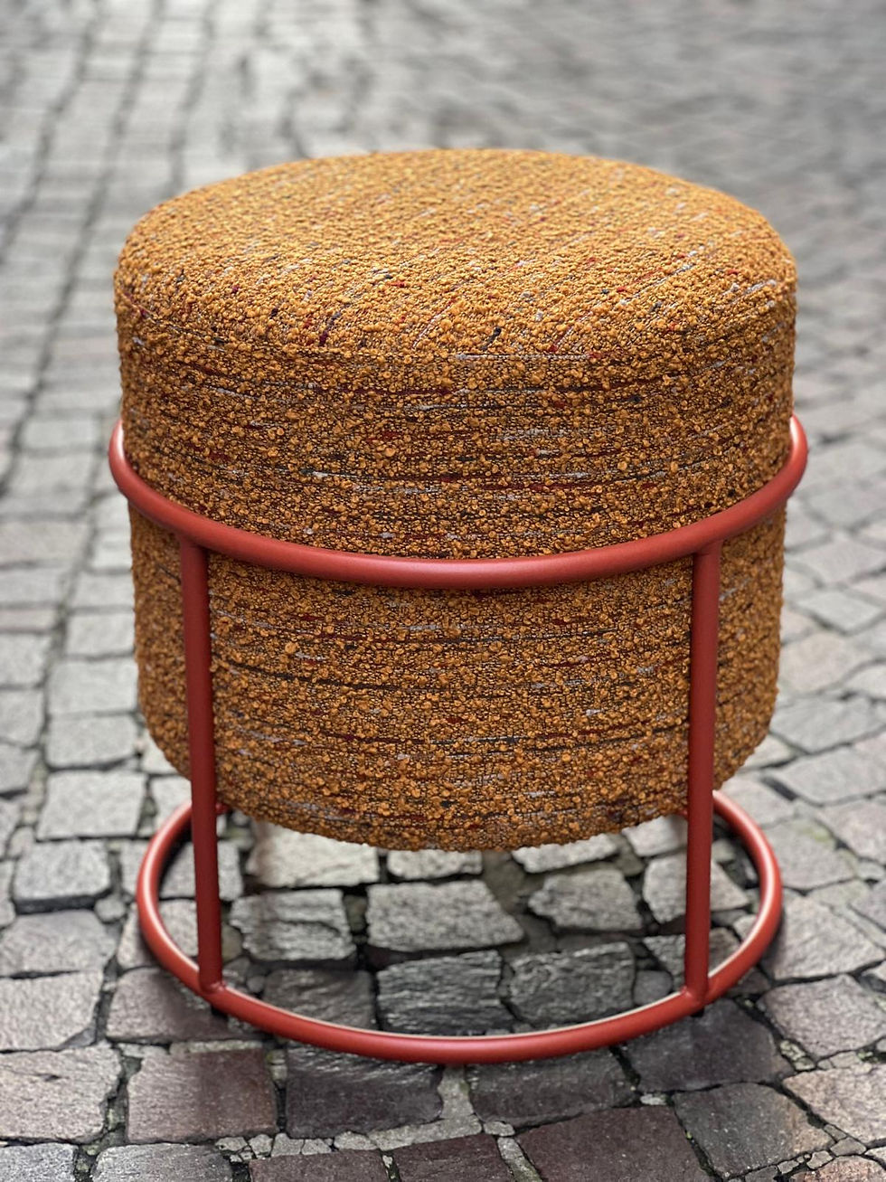 Sgabello in metallo rosso mattone e tessuto mélange ocra "Vectra"